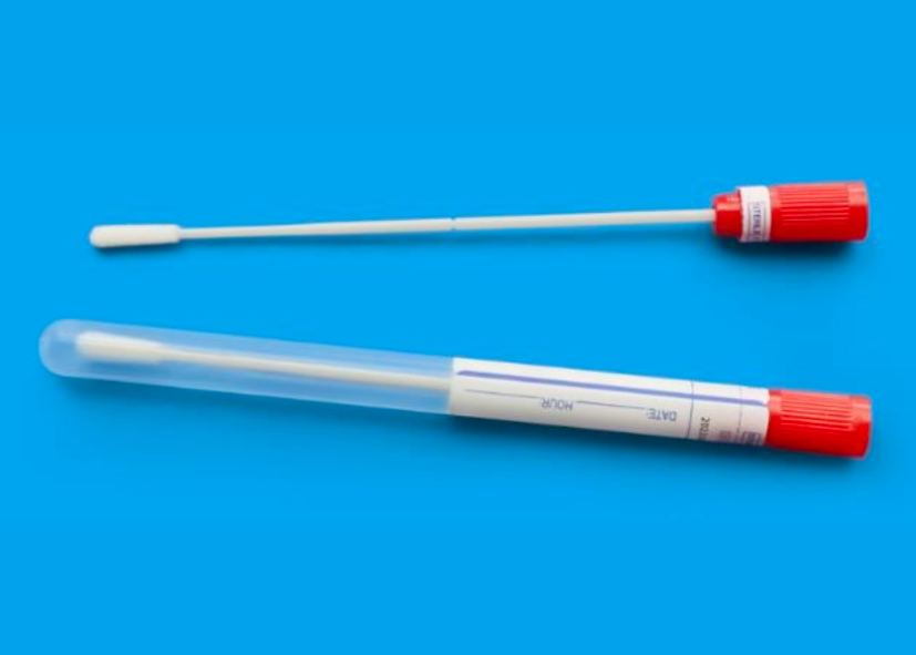 Hisopos flocados de nylon orofaríngeos y tubos estériles que combinan las funciones de recolección y conservación en uno.
